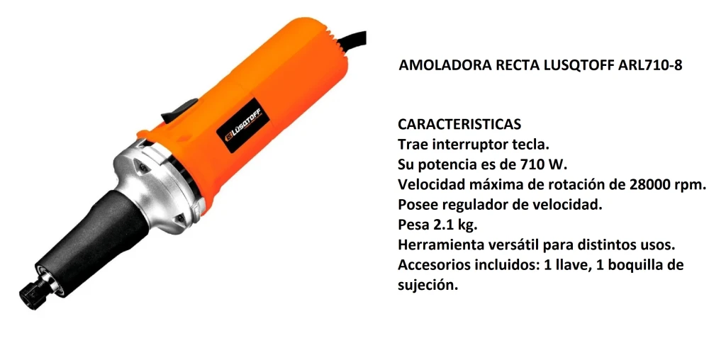 Equipá tu casa o taller y ¡hacelo vos mismo! Esta amoladora recta es ideal para pulir y lijar distintos tipos de materiales derivados del metal y de la madera. A diferencia de otros tipos, se caracteriza por llegar a lugares o sitios con ángulos de corte complejo, lo que dá como resultado una labor con acabado perfecto.